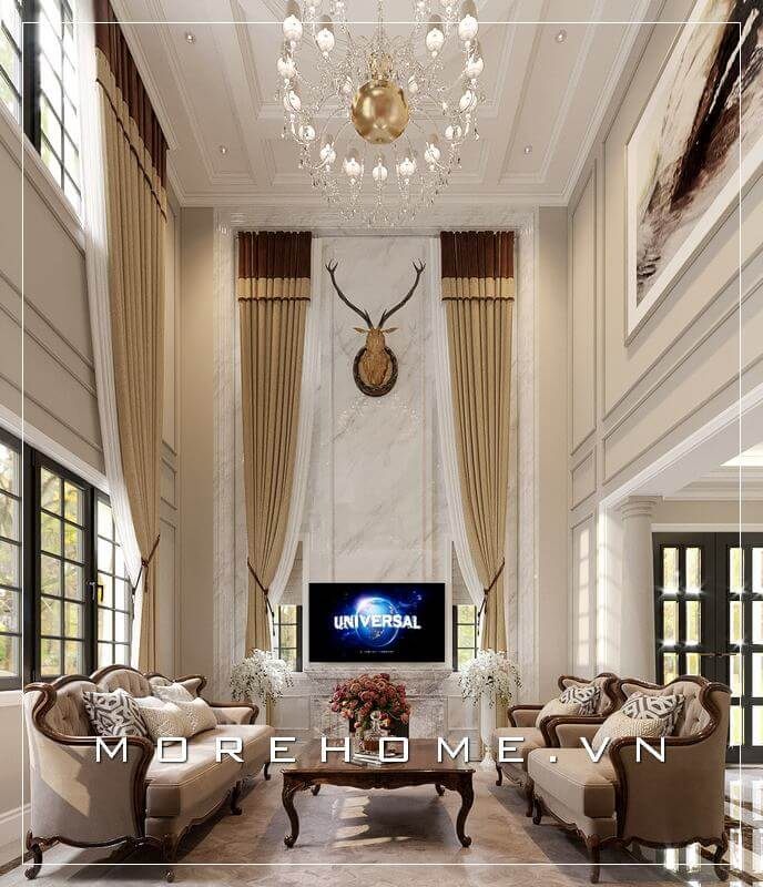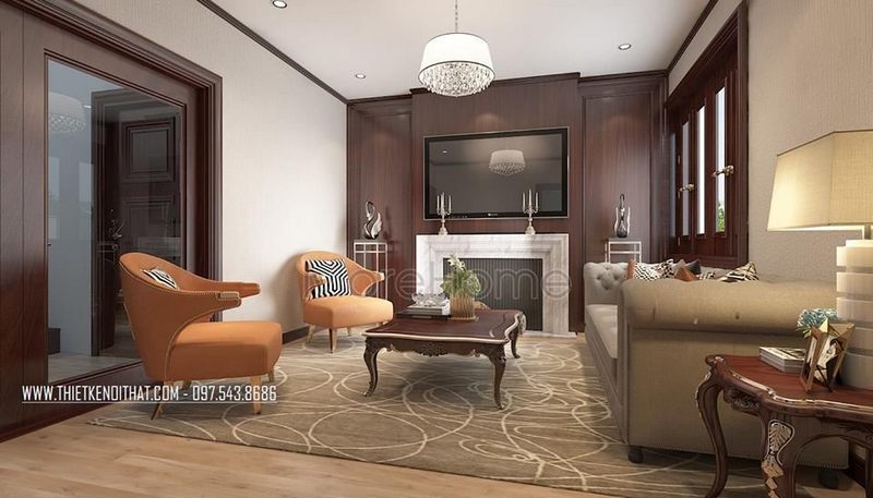 Với chất liệu gỗ tự nhiên, thiết kế tân cổ điển đơn giản tạo sự hài hòa cho không gian sống