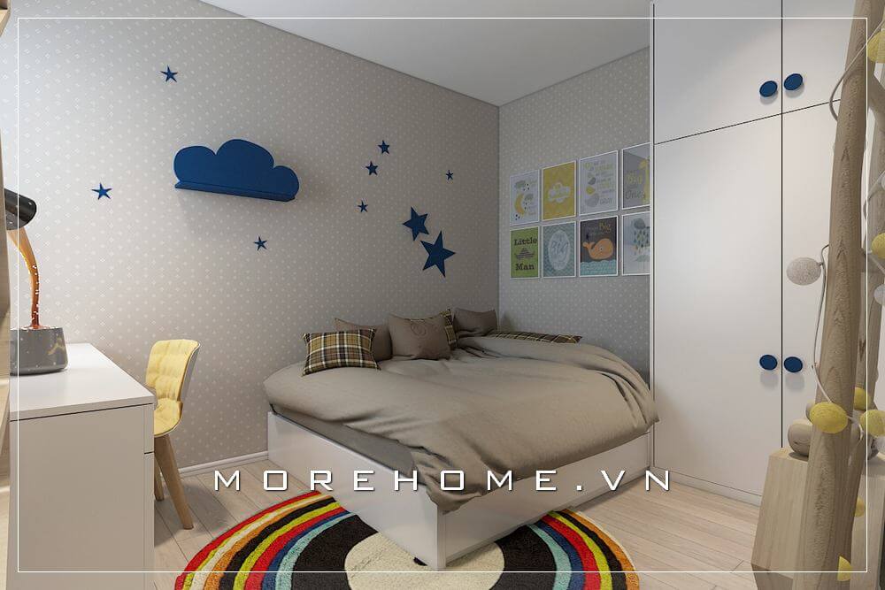 Thiết kế nội thất phòng ngủ con trai đầy ấn tượng với chiếc giường ngủ màu trắng gỗ công nghiệp